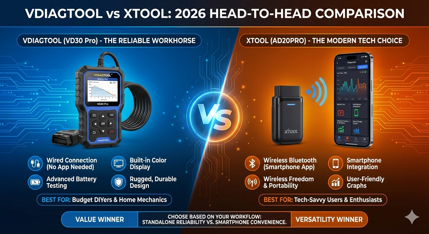 If you’re a home mechanic or a car enthusiast, you’ve likely narrowed your diagnostic search down to two heavy hitters: VDIAGTOOL and XTOOL. Both brands have dominated the 2025-2026 market, but they cater to very different types of users. In this guide, we’re putting the VDIAGTOOL VD30 Pro up against the XTOOL AD20PRO to see which one deserves a spot in your toolbox.