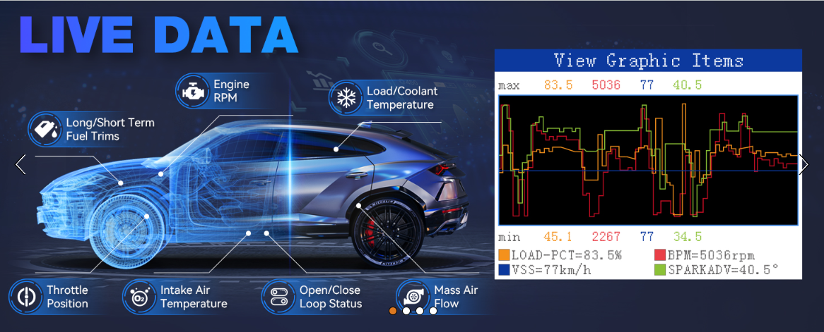 * Wireless Freedom: Move around the vehicle while reading live data without being tethered by a cable.