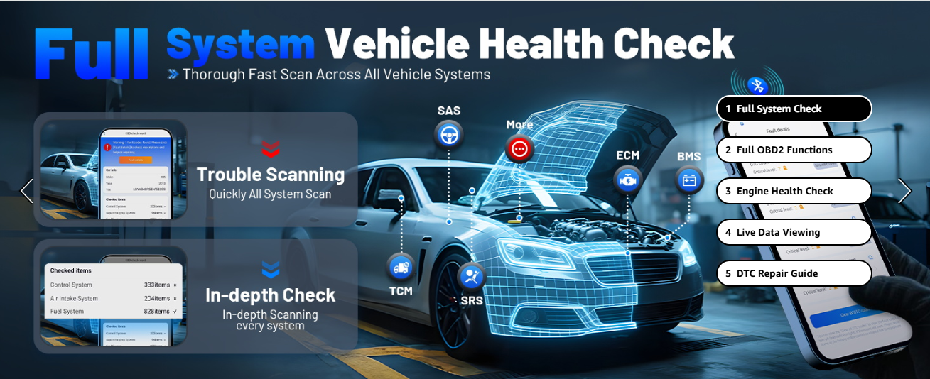 * No App Required: All diagnostic software is built into the handheld screen, providing a seamless and straightforward user experience.