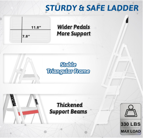 Unlike standard ladders, it features secure handrails for balance, non-slip steps for safety, and a foldable design for easy storage, the perfect combination for both indoor and outdoor projects. Whether you’re a homeowner, a senior, or a DIY enthusiast, you’ll appreciate how this ladder combines sturdy construction with space-saving portability to simplify everyday life.