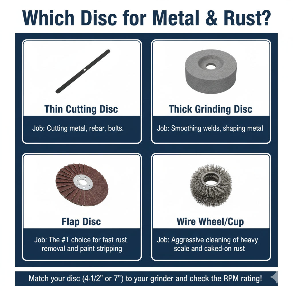 - Abrasive Cutting Discs: These are for the "metal" part of the job. They are thin, brittle discs designed only for cutting, not for grinding or rust removal.