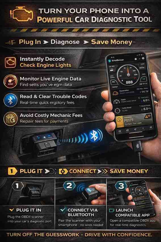 An OBDII Bluetooth scanner transforms your smartphone into a powerful vehicle diagnostic tool, allowing you to read check engine codes, monitor live engine data, and understand car issues instantly, without paying expensive mechanic diagnostic fees. Simply plug the scanner into your vehicle’s OBDII port, connect via Bluetooth, and use a compatible app to access real-time performance insights and repair information directly from your phone.