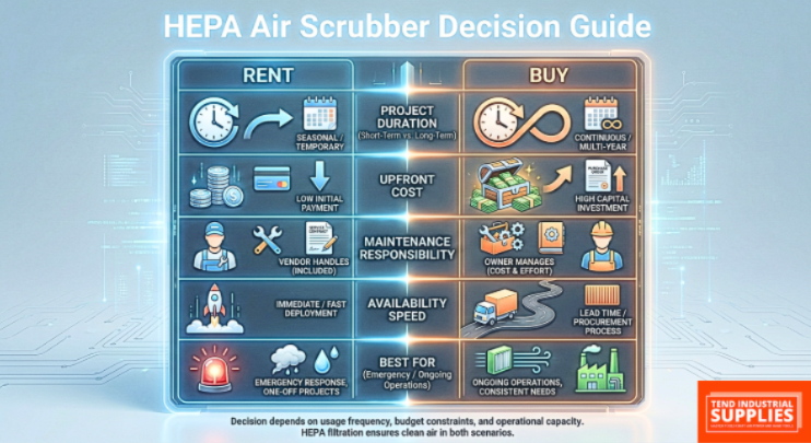 - Project duration and frequency are the biggest decision factors—if you rent HEPA air scrubbers regularly, ownership becomes more cost-effective over time.