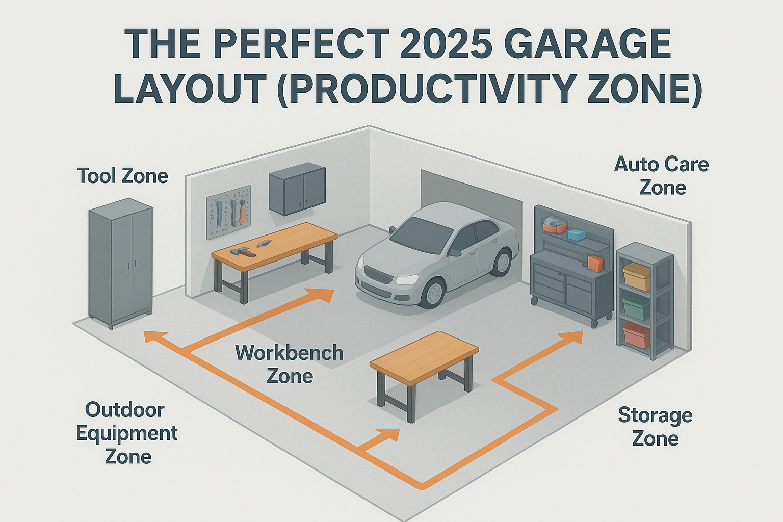 To organize your garage for peak productivity, you must use a zone-based layout, maximize vertical and ceiling storage, declutter consistently, upgrade your workbench area, and store tools based on frequency of use. The fastest way to boost productivity is to create dedicated zones, such as a Tool Zone, Workbench Zone, Auto Care Zone, and Storage Zone, so every item has a logical home and your workflow becomes seamless, efficient, and stress-free.