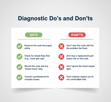 - Research and Inspect Before Buying Parts: After noting the code, research its common causes online and perform a simple visual inspection for obvious issues like a loose gas cap, cracked hoses, or disconnected wires before spending money on parts.