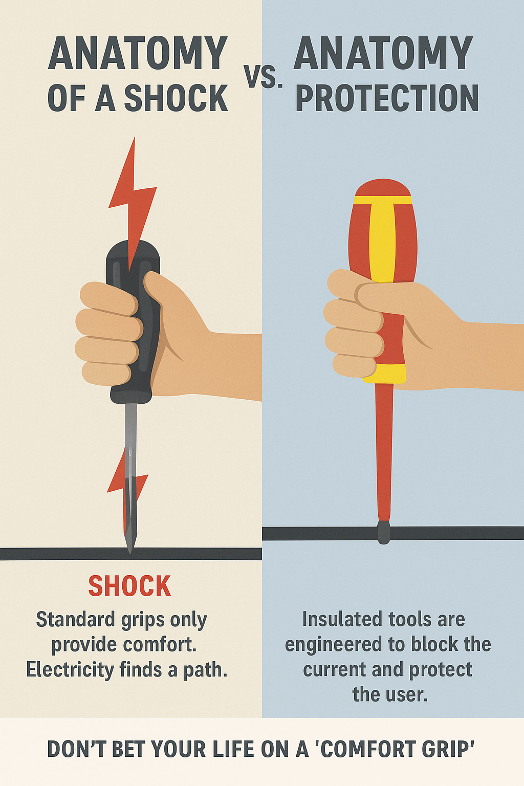 - Standard "Comfort Grips" Offer ZERO Protection: A standard rubber or plastic handle is designed only for grip and comfort, not electrical safety. It will not protect you from a live current.