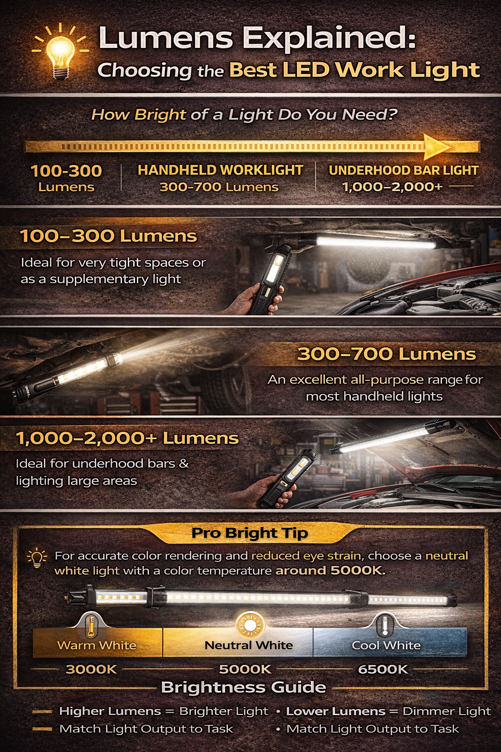 - 1,000-2,000+ Lumens: Ideal for underhood lights that need to illuminate a large area.
