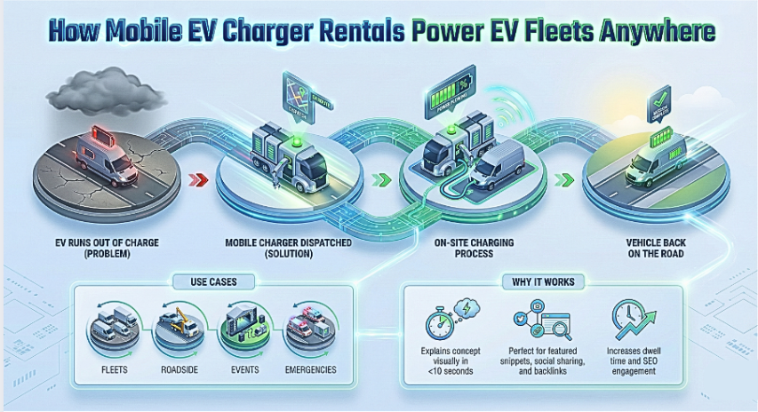 As electric vehicles continue to reshape global transportation, charging access not vehicle capability remains the critical factor determining uptime and efficiency. Mobile EV Charger Rentals: The Fastest Way to Power EV Fleets & Roadside Assistance highlights how bringing power directly to the vehicle has become the smartest response to infrastructure gaps, roadside emergencies, and fleet scalability challenges.