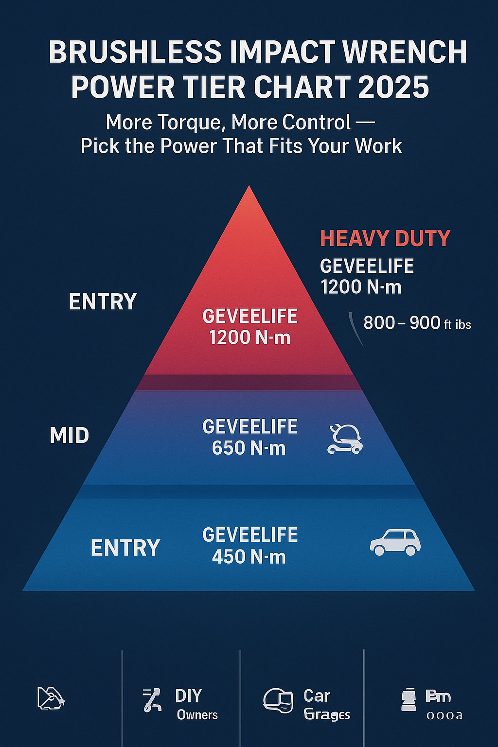 - For Extreme Jobs: If you need to tackle heavily rusted or oversized bolts on trucks or farm equipment, the GEVEELIFE 1200N.m (900Ft-lbs) provides unmatched, extreme power.