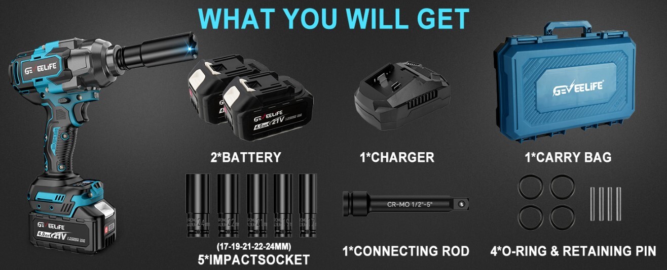 1. GEVEELIFE 650N.m (480Ft-lbs) Brushless Impact Wrench