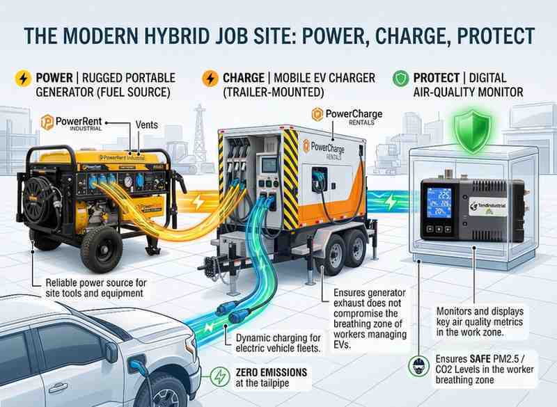 The answer lies in a powerful combination: mobile EV chargers, portable generators, and indoor air-quality monitors. Together, they form a complete ecosystem that ensures productivity, safety, and sustainability on modern job sites.