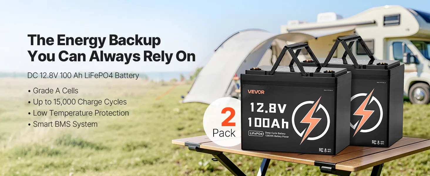 Meet the VEVOR 12.8V 100Ah LiFePO4 Battery — your ultimate solution for reliable, long-lasting, and eco-friendly power. Engineered with Grade-A lithium cells and an intelligent Battery Management...