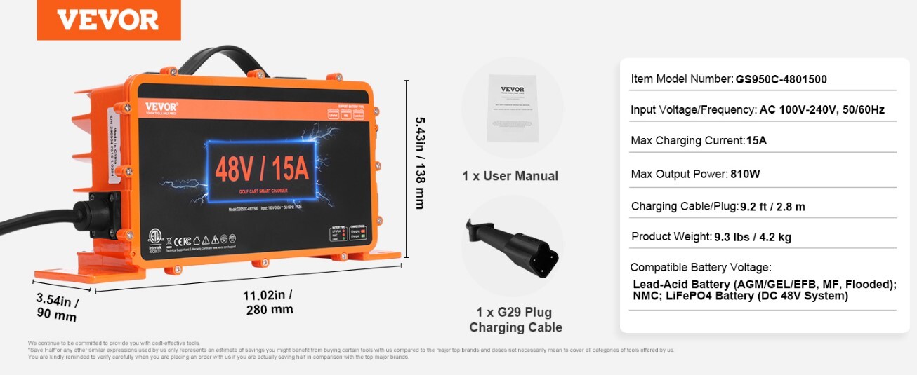 The VEVOR 36V 18A Golf Cart Battery Charger Powerwise...
