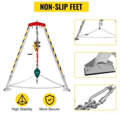 Our VEVOR Confined Space Tripod Kit 32.8' is a specialized tool designed for safe and efficient access, rescue, and maintenance in confined spaces such as manholes, tanks, and silos. It also complies with industry safety standards for fall protection and confined space operations, ensuring reliable performance during critical tasks.