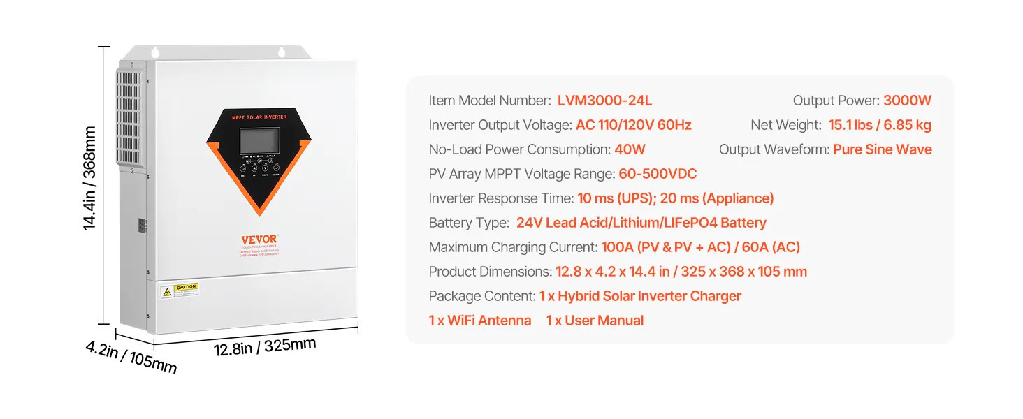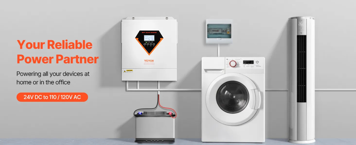 Elevate your off-grid energy setup with the VEVOR Hybrid Solar Inverter 3500W — a streamlined all-in-one solution that integrates a 3500 W pure sine-wave inverter, battery charger, and a...