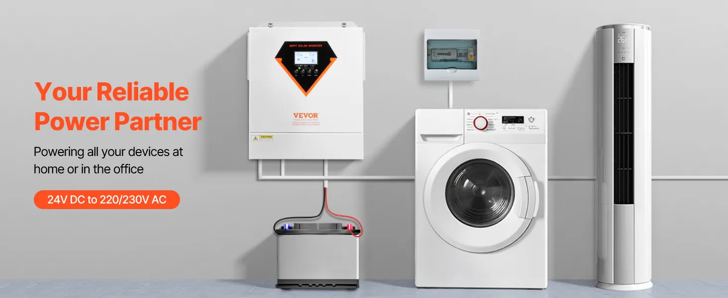 Meet the VEVOR 3000 W Hybrid Solar Inverter — the all-in-one powerhouse that merges inverter, charger, and MPPT solar controller into a single unit. Tailored for off-grid systems using 24 V battery...