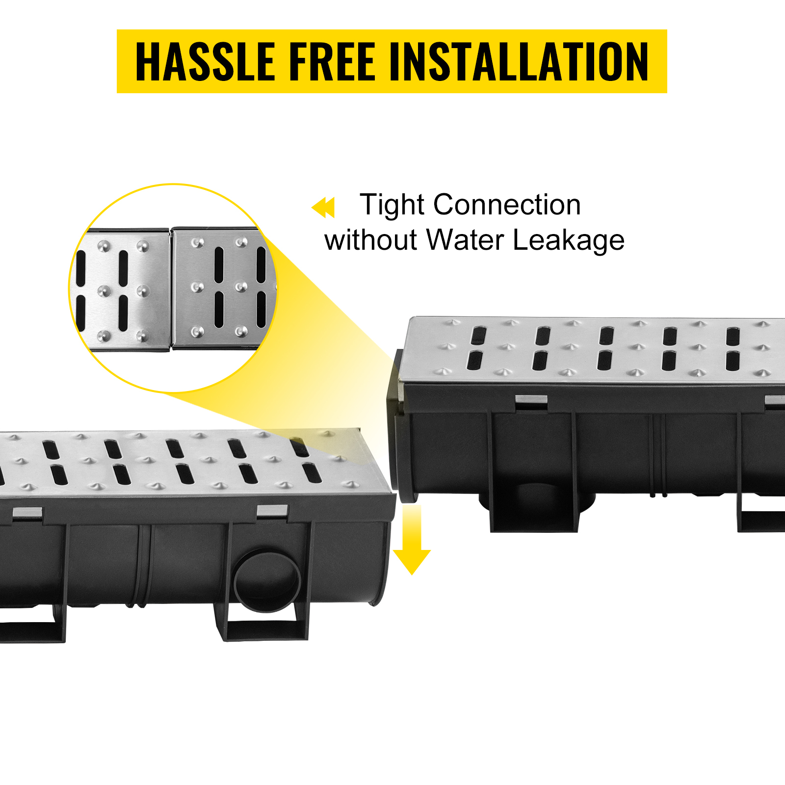The interlocking system allows drains to connect tightly with no water leaks. No tools or screws are needed to install or remove the grate – it snaps on and off by hand for easy cleaning.